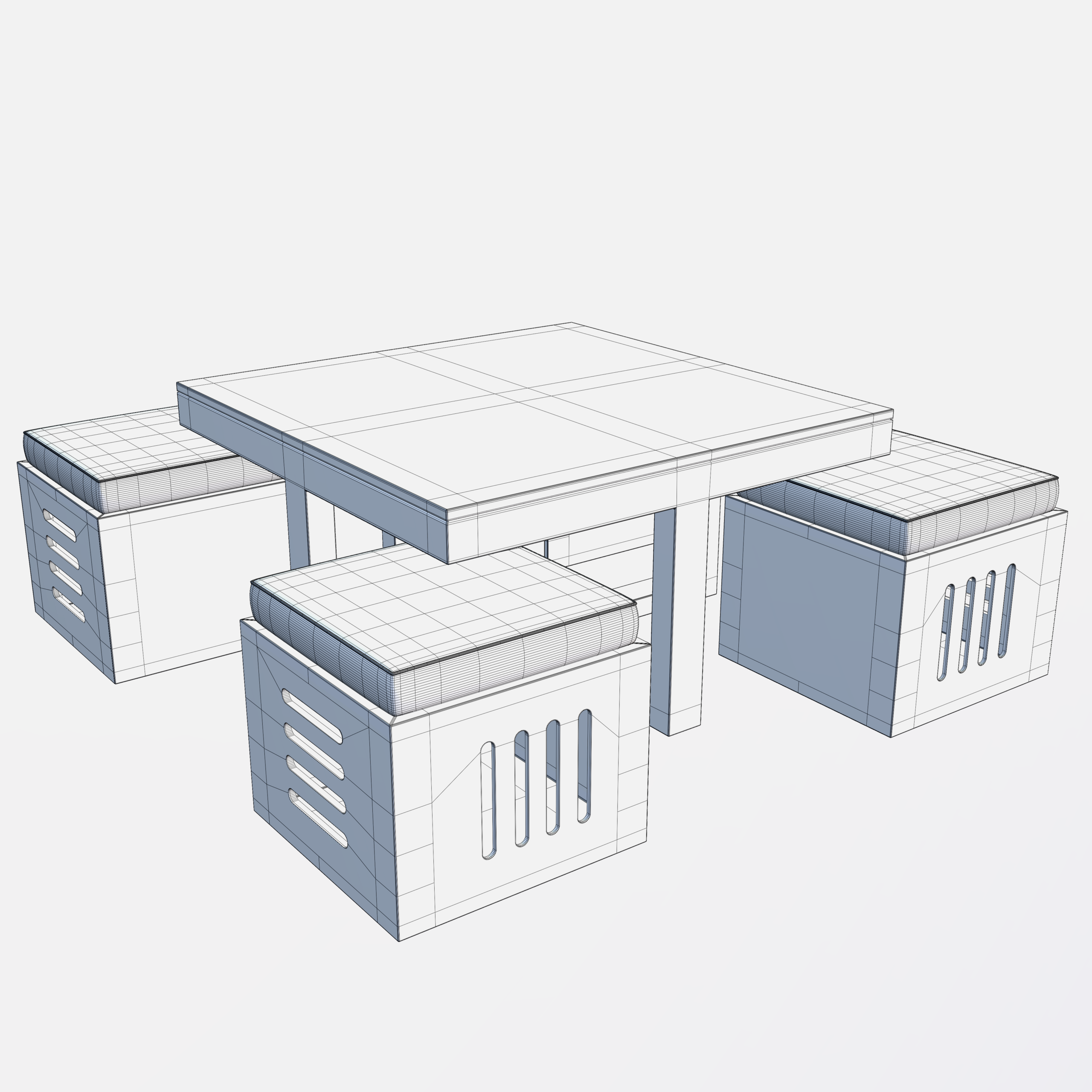 • This Coffee Table with Stool 3D Model has 4 textures, which are in 4096 × 4096 resolution (4K textures).