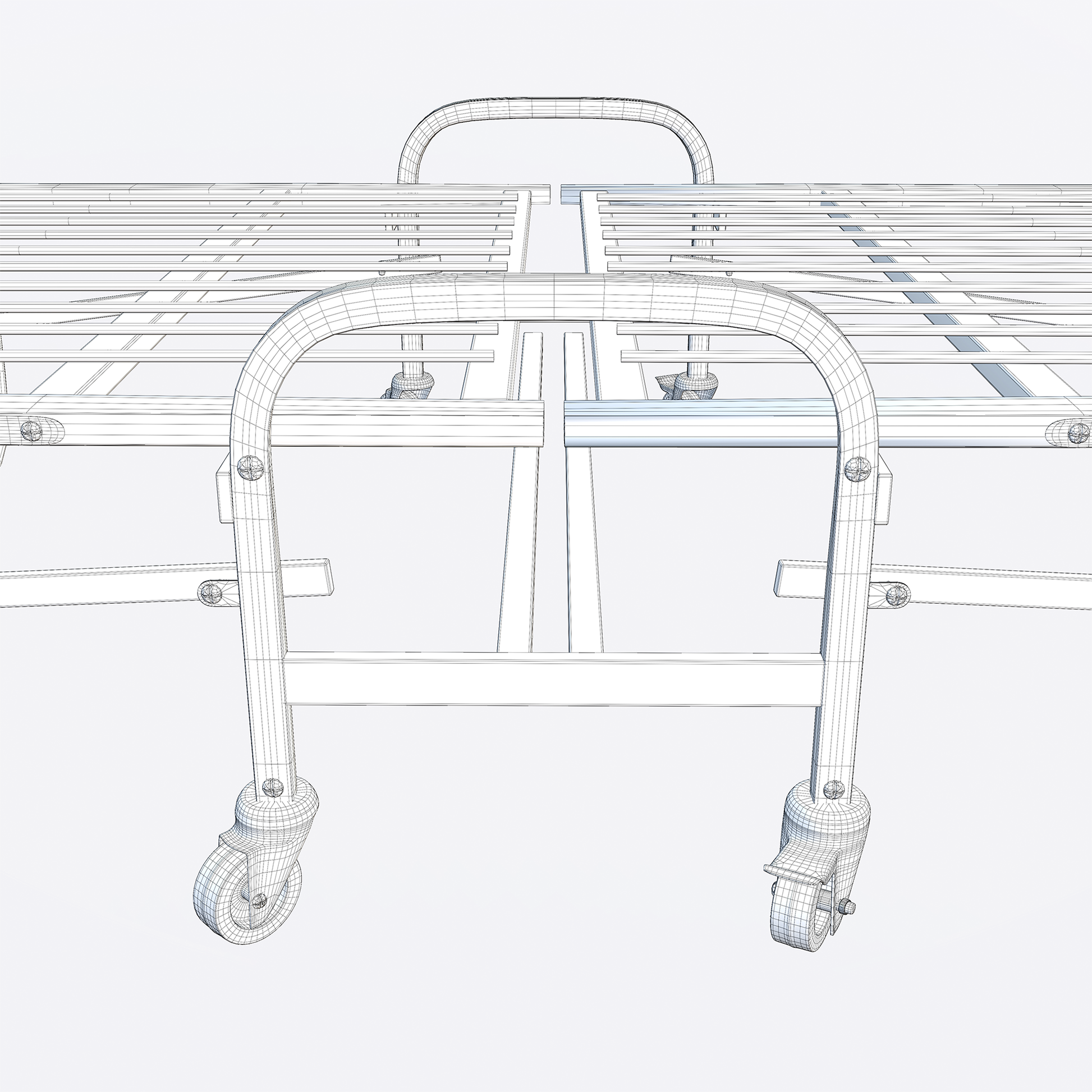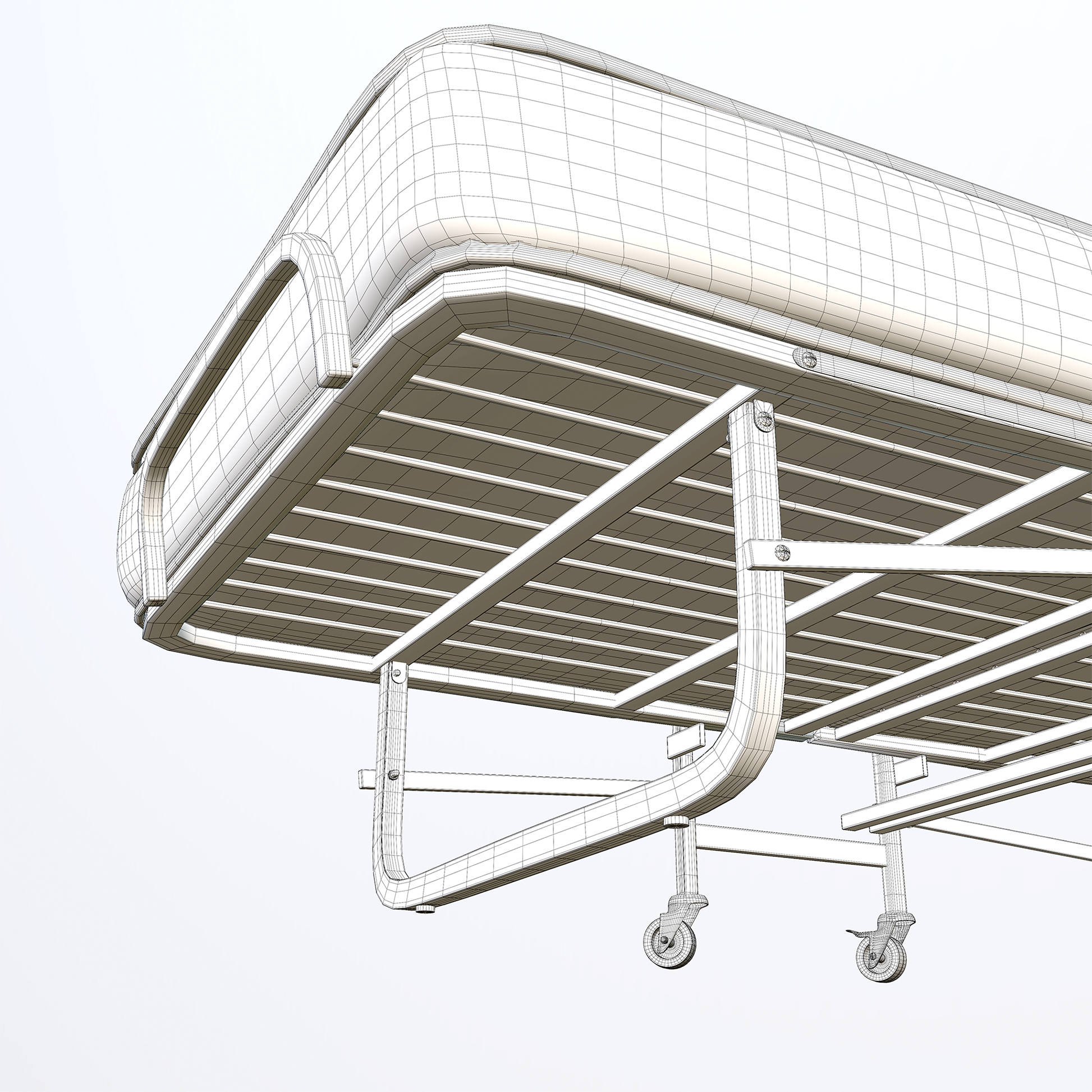 • Vertex and Tris Count: 49692 vertices and 97416 triangles for the detailed rendering of the Folding Rollaway Bed 3D Model
