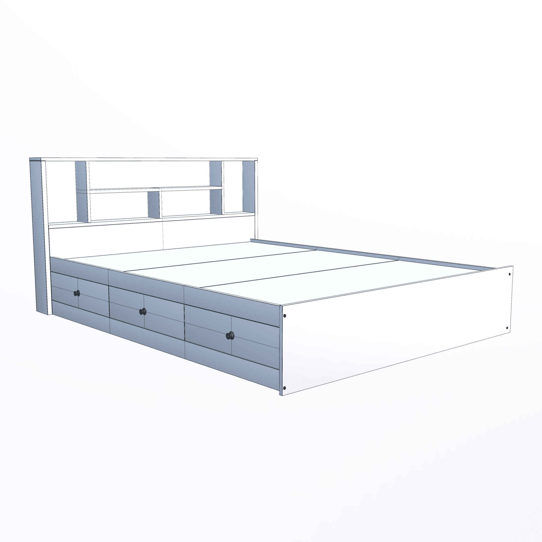 • Model Overview: Photorealistic Queen Size Drawer Bed 3D Model